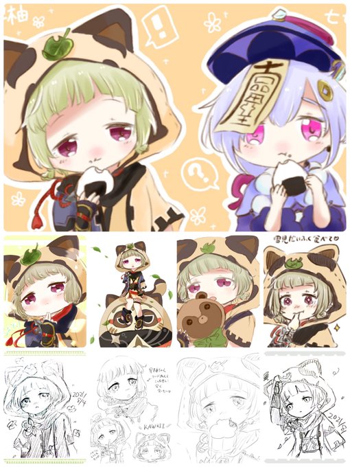 早柚ちゃん〜いっぱいお食べ🍙🍙🍙 #原神イラスト #早柚 #Sayu