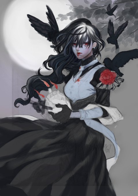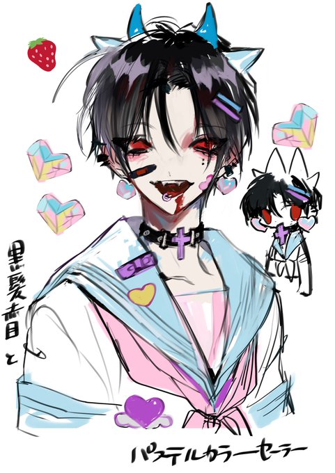 今日の!急いでらくがき 黒髪赤目とパステルカラー