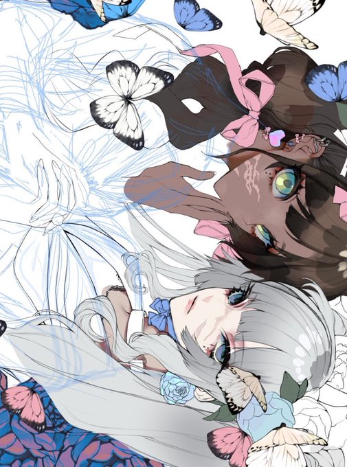 青味ピンクから水色グラデにハマってたときの過去絵