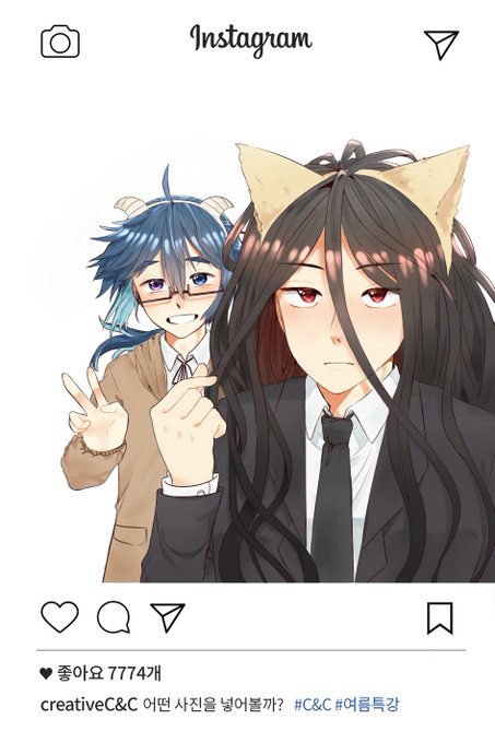 학원 과제여서 카무쿠라랑 내 이뿐 자캐넴 같이 그룟따!!!😭💕(시간없어서 효과로 대충 그려부림ㅠ