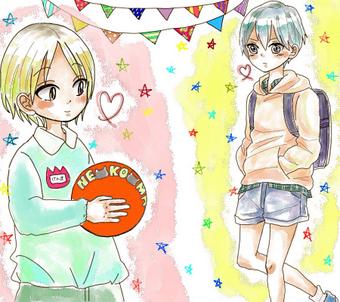 ずっと描きたかったHQショタ企画(^^) 遅ればせながらコッソリ参加します…! けんま5歳、とびお10歳くらい(⌒▽⌒) #HQショタ化企画