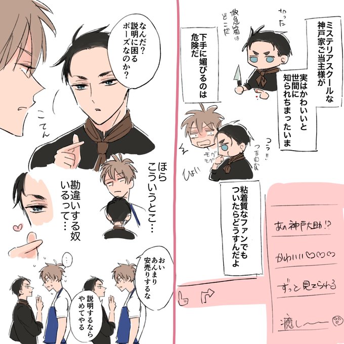 全然浮上できなかった……合間合間にちまちまかいていた割烹着春の春大🌸💴 刑事と小料理屋って…😭🙏 小料理屋加藤と警視庁に敵作りまくってる神戸警部のパロです。公式絵ありがとう…