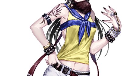 無防備な胸元、攻めたヘソ出し、大ダメージ半分致命傷半分のジーンズ、腰巻アウター、足首のミサンガ。