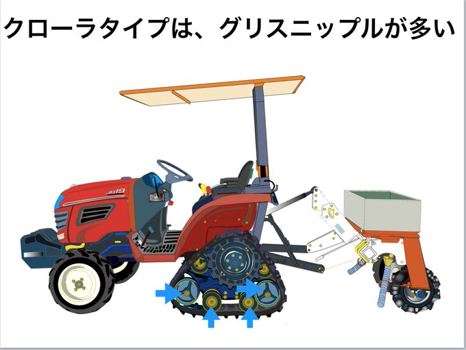 新型のトラクタでも、グリス入れるところはあるよ。
