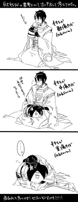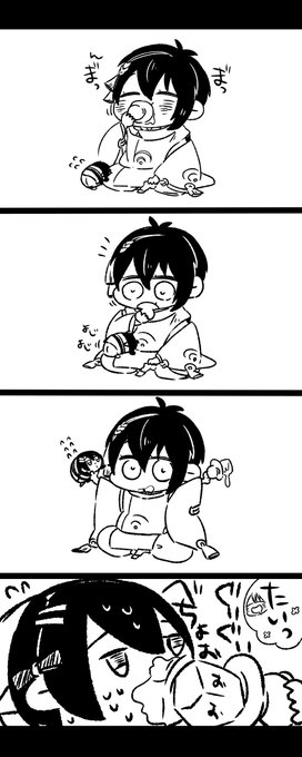 #ミニキャラと等身大のギャップを晒す 最初の二枚は初めての豆まきで興奮して描いた奴。 三枚目は四枚目の刀の柄がチーズドッグにしか見えなくなって描いた奴。