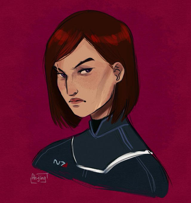 i humbly offer my f!Shephard as i play #MassEffect for the first time. (psst i'm loving iiiit)