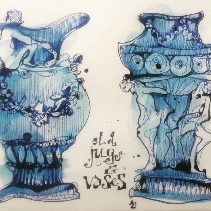 Drew this pair of old jugs at @mcrartgallery finished them at home. #inktober #inktober2015 #inktober18