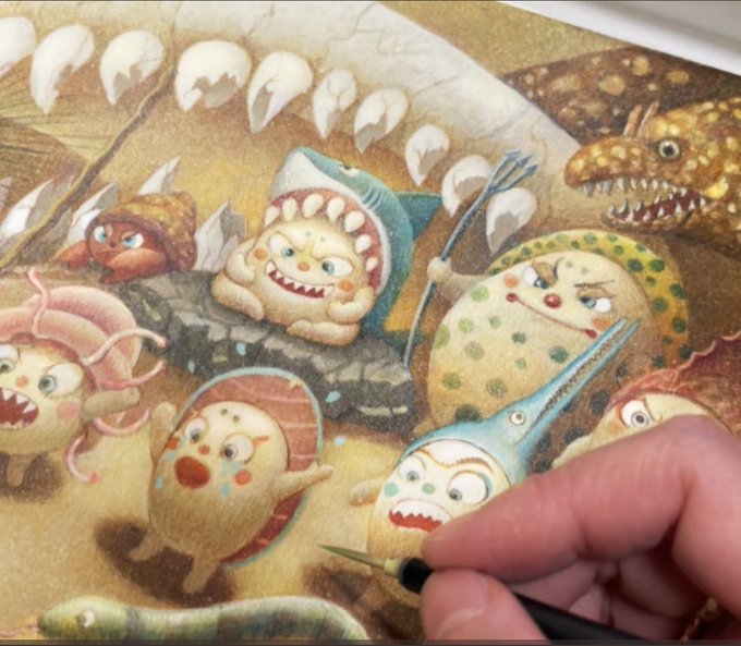 アニメが終わってしまうのは寂しいですね🥲でも絵本では新キャラがこれから続々と登場します✨今、電気クラゲをモデルに描いてますえんぴつ✏️