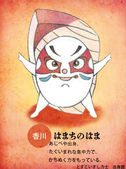 絵本「どすこいすしずもう~たまごのさとのひみつ 」より~全国津々浦々、すし力士の出身地を紹介致しま~す!