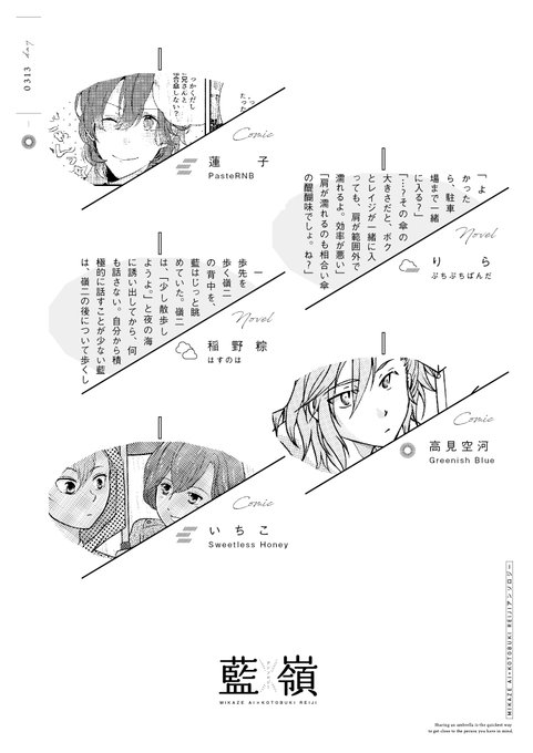 総勢14名が描く、傘や雨にまつわる藍嶺のお話を集めたアンソロジーになります。