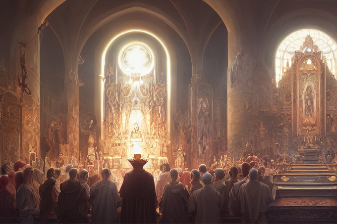荒廃後の聖堂に住み着いた巨竜 Giant dragon living in the cathedral after the devastation #midjourney
