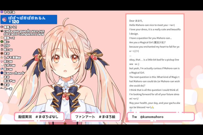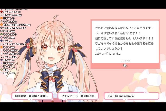 マシュマロ配信お疲れ様でした! 最初のマジのマジレスで笑ってしまったけどその通りだと思いました!推しマークの話めちゃめちゃ深くて素敵ですね!他にもいろいろ勉強になりました!本当にかのちの考え方すごい素敵で好きです! 楽しい時間ありがとうございました!! #まほろばなし