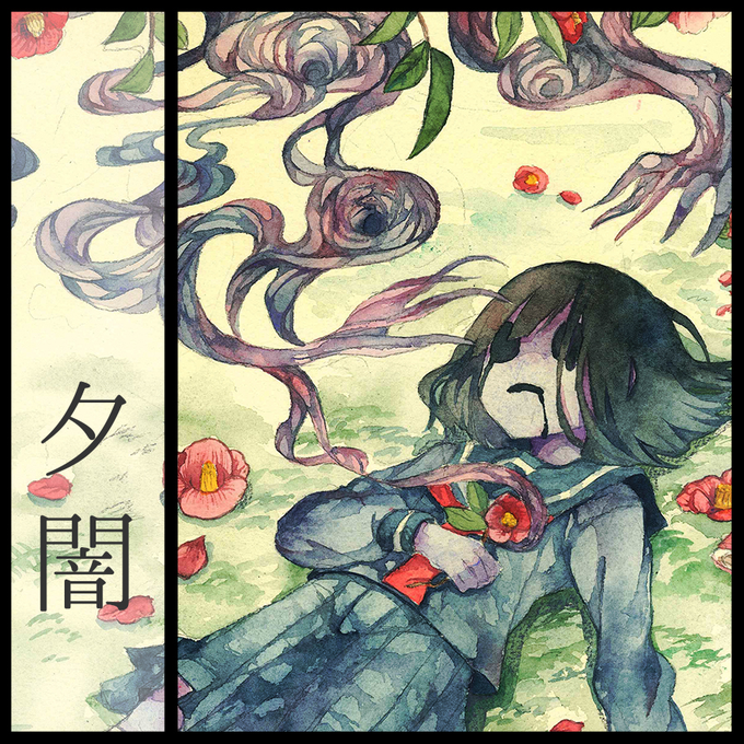 水彩で緻密な表現をされます。どこか陰を感じるような作品と、艶めかしい目の表現が特徴。今年の妖怪はどうやら金魚が絡んでる様子。