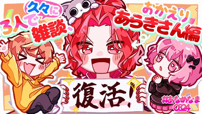 あらきさんおかえりなさいーー!! 久しぶりに3人の雑談聞けてめっちゃ嬉しかった!!!開始早々イケボ?最高でした笑 入院中の話で麻酔激弱あらきさんと麻酔激強めいちゃんなのめちゃ笑った笑 来週めいちゃんいないの寂しいけどあらなるで雑談でもゲームでも楽しみにしてます! #おかえりあらきさん