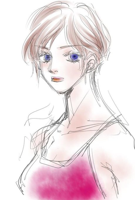 7年前の絵。ラフにそのまま軽く着彩してみた…みたいな。デジ絵の練習かな?(たぶんSAI)