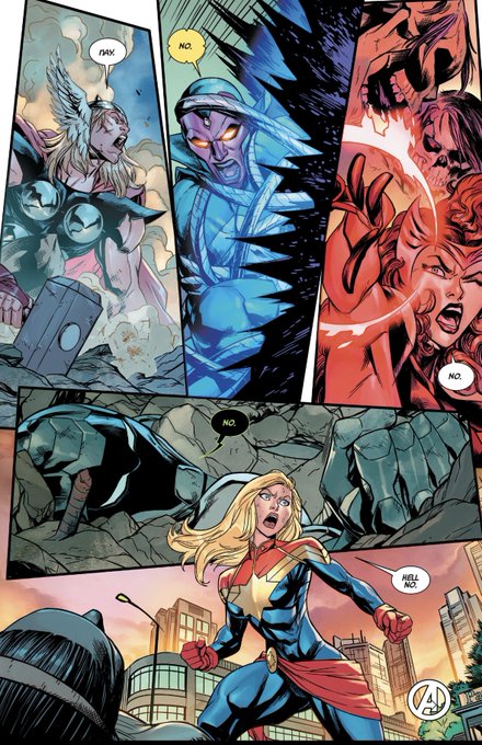 アベンジャーズ#5-6読んだ。 世界各地で苦戦を強いられるアベンジャーズたちは、それでも敵にNOを突きつける。 ジャンプ漫画のような、逆境からの大逆転劇が気持ちいい。 実は結構シンプルな能力バトルなんだけど、それを圧倒的なビジュアルのカッコ良さで魅せてくれるんだよな。