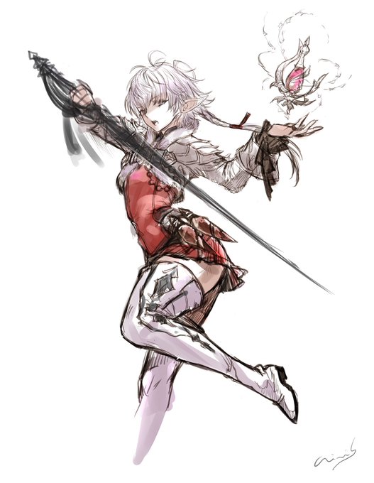 #今月描いた絵を晒そう #FF14 #グランブルーファンタジー #オーバーロード 途中の絵ばっかりだった…ここ数週間は何となく版権イラストを描きました。8月中に完成できるといいな。