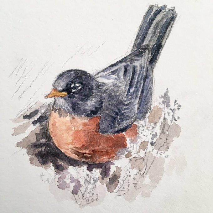 Robin ▫️Day 082▫️The robins have returned 😁 #happyspring #naturejournal