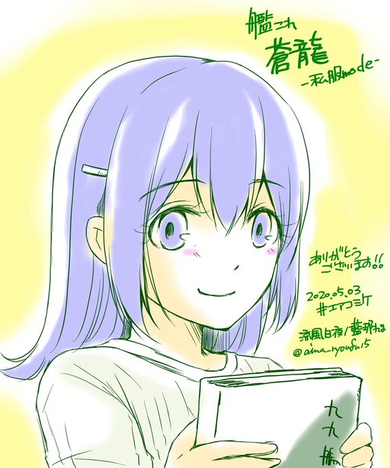 エアスケブ企画12時04分受信「艦これの蒼龍(私服MODE)でリクエストお願いしたいのですが大丈夫でしょうか?」蒼龍私服可愛いですよね❤️私も大好きです!楽しんで描きました!ありがとうございます!!