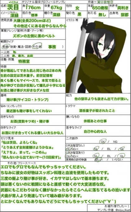 Pixivにもあげたけどこっちにも #創作獄卒 #オリ獄卒プロフィール