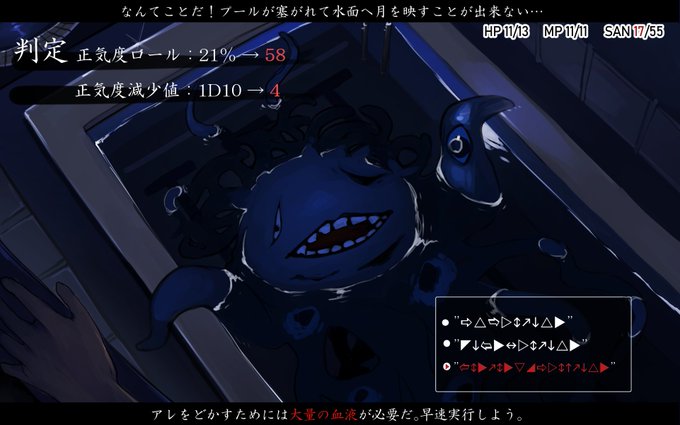【プレイキャラクターの正気度によって難易度が変わるゲーム⑯】 対象のSANチェックに失敗するとPCは正常な判断がつきにくくなる。