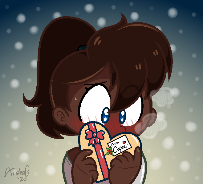 Capri is nigh invulnerable to most cases of situational embarrassment... but she gets kind of shy when giving her own homemade chocolate to someone she adores!! She really hopes they like it~ 💝🎄