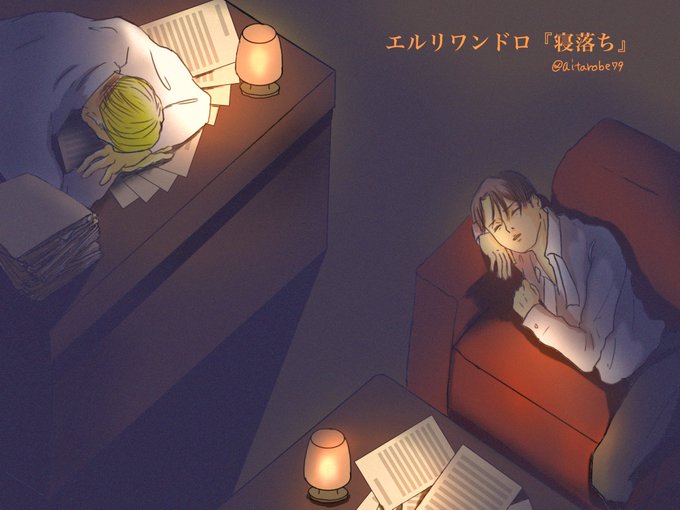 #エルリ版深夜の真剣お絵描き60分一本勝負 お題『寝落ち』2021.9.17 22:50-23:55 5分オーバー ある夜の執務室