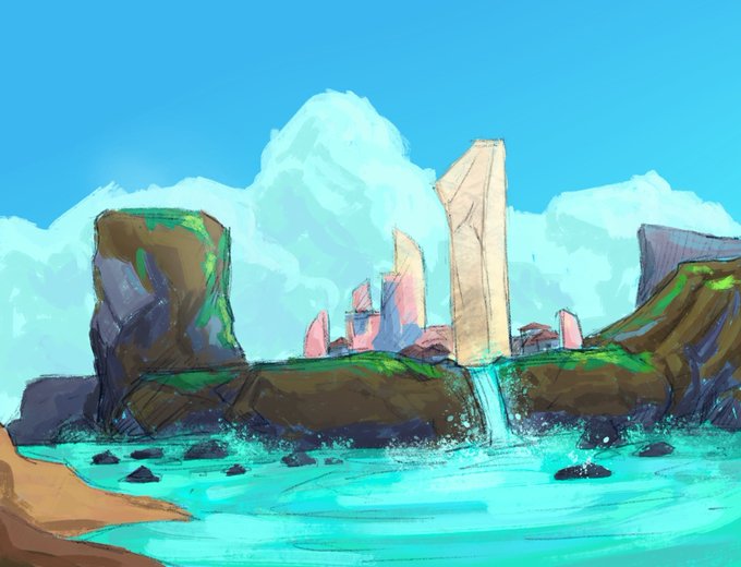 #art #artwork #drawing #sketch #lineart #coloring #painting #digitalart #illustration #fantasy #fantasyillustration #fantasyart #environmentart #landscape #visdev #conceptart #clouds #chameleon #water #rocks #krita #aitolu