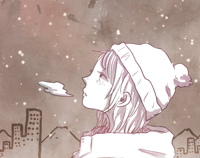 鮃屋さん(@ooo_hira )のイラストを 描かせていただきました🐟 「冬の夜風は心に染みる」 ヒラさんの線がふんわりゆるくて好きです🌸