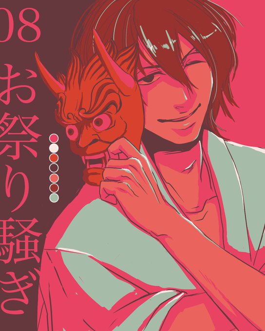 #リプをもらった番号の色を使って絵を描く みさきさんより08 お祭り騒ぎで新開さん テーマは「鬼さんこちら」