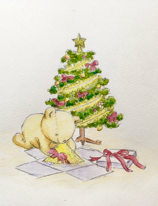 朝起きて、ツリーの下に置いてあったクリスマスプレゼントのきな粉に喜ぶくま #スルクマ #クリスマス #プレゼント