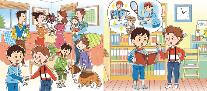 ヤマハ英語教室で今年度から使われているAudio Bookの挿絵を描きました。