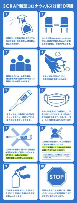 本日も「SCRAP新型コロナウィルス対策10項目」を徹底し、細心の注意を払って運営に努めてまいります。