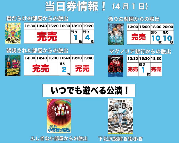 【4/1 当日券情報】