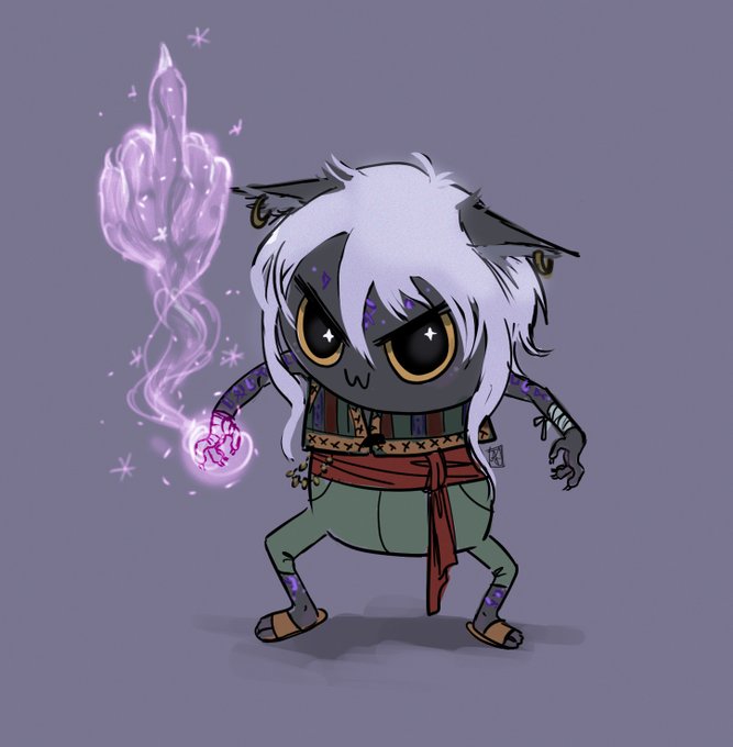 Kou’alas ((smol!) he, cat shifter Runechild sorc with gremlin vibes)