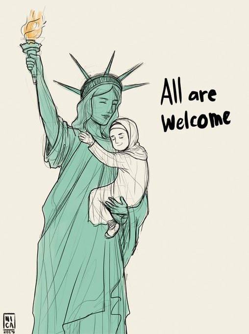”Give me your tired, your poor, your huddled masses…” Artists show solidarity with Lady Liberty. #NoBanNoWall