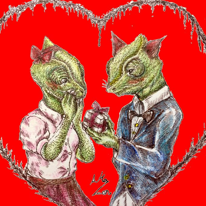 #ハッピーバレンタイン #ValentinesDay #イラスト #カメレオン #ペン画を流してペン画民を増やそう #ペン画 #イラスト王国