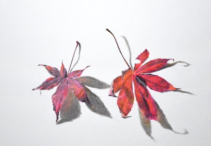 色鉛筆の白、黒、グレー、三原色を使って短時間で描いたやつ。 #色鉛筆 #色鉛筆イラスト
