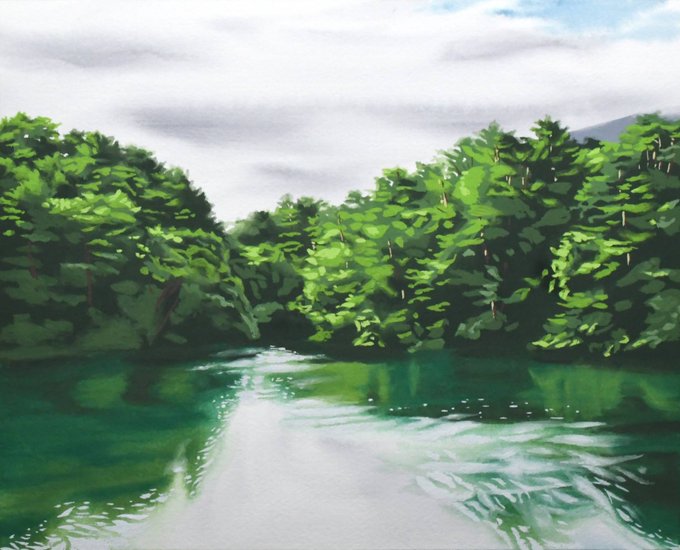 短時間で描いた油絵の水景。