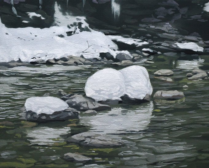 3時間40分くらいで描いた冬の川。 ←描き出し →完成