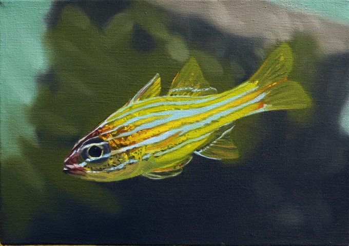 油絵で変な静物画っぽいの描いています。