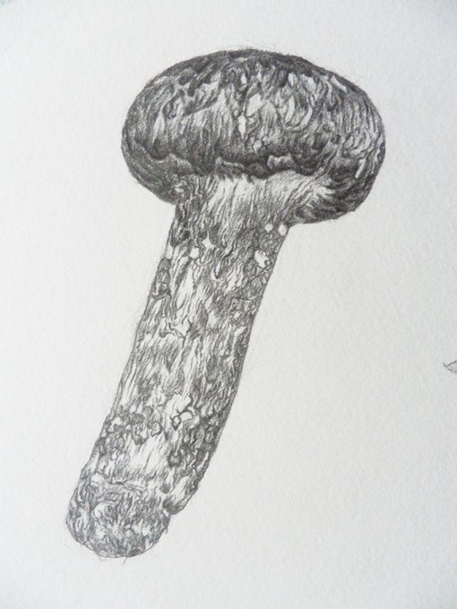 今年は松茸が豊作だったので描いた。 でも、食べてない・・・ 絵に描いた餅ならぬ、絵に描いた松茸。 https://t.co/lPyJZsO0fi #松茸 #きのこ #鉛筆画 #マツタケ
