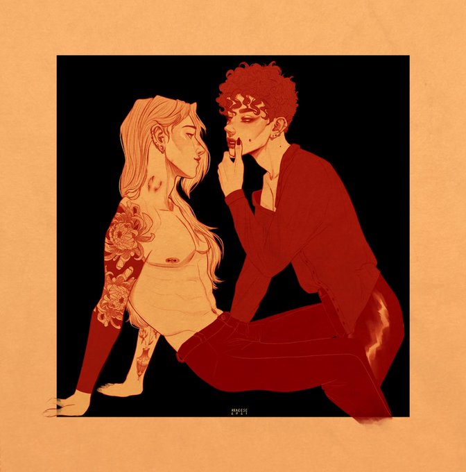 #lesbiansupport hi i’m aeth, an agender lesbian artist! ✨ i draw queer people in a supernatural universe with demons, angels, witches and more! 🍄