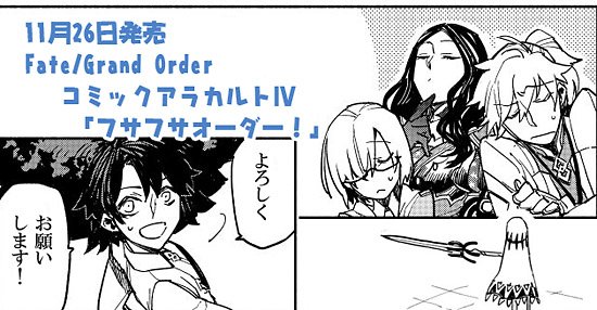 早いとこではもう本屋さんに並んでるそうですがー!「Fate/Grand Order コミックアラカルトⅣ」明後日11/26発売ですよろしくね!また同日発売のコンプエースでも出張掲載して頂いているそうです。どちらもナニトゾー!https://t.co/y3wiPJL5A7