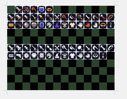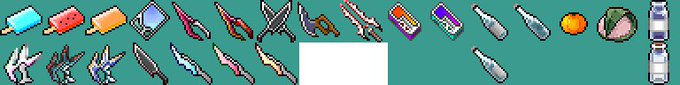 私が初めて描いたドット絵が出てきた。 今の武器と見比べると、成長してるなぁって感じがして一人でほっこりしてた 昔← →今