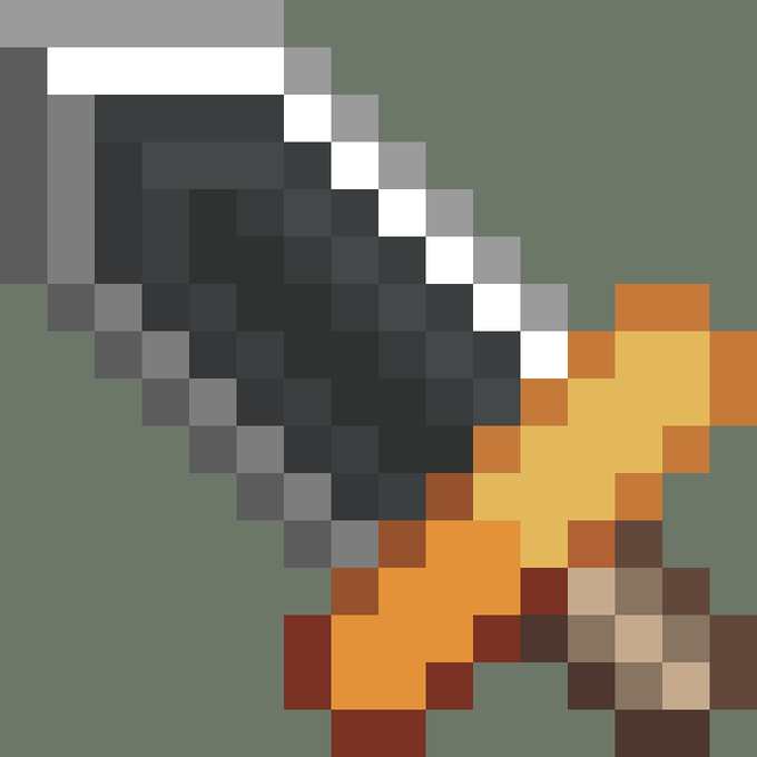 武器や小物を描いたりするドット絵描きです。 ふざけ絵もたまに描くかもです。