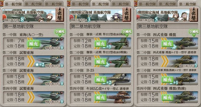 E4-3甲削りメモ 道中決戦支援あり、基地T2, V, W ボスまでは安定して行けるから虚無削りとはいえあんまりストレスはなかった感