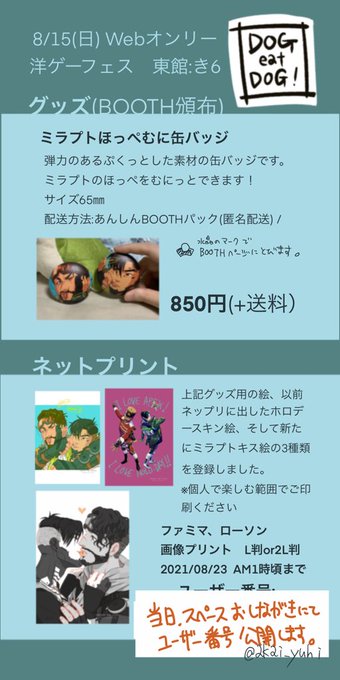 ネットプリントの印刷用ユーザー番号はこちらのイベント会場にて本日23時まで公開しています!お品書きを見てね