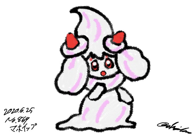 1日1匹ポケモンお絵描きチャレンジ No.869 マホイップ イチゴのショートケーキはいかが?