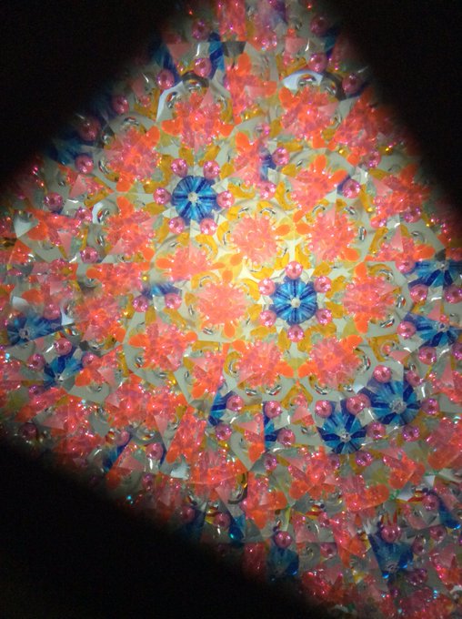 京都で作ってきた万華鏡、何度回しても同じ柄にならないので飽きずにクルクル回してる………ゲームで疲れた脳に?目に?凄い癒し効果。
